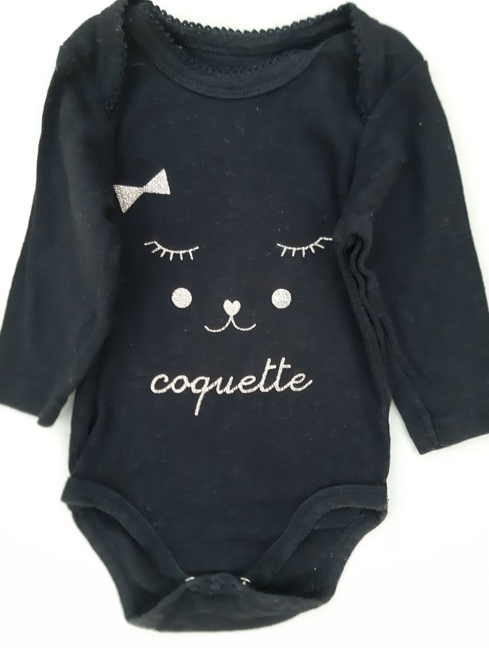 body à manches longues noir, de la marque Kiabi, en taille 3 mois motif : visage de chat inscription : coquette En très bon état. 🔍 D'autres vêtements en taille 3 mois disponibles dans mes annonces. Utilisez les filtres par tailles pour les retrouver. 😉 🏷 jusqu'à 15 % de réduction pour l'achat de plusieurs articles Remise en main propre possible dans le secteur de Pont-Audemer / Beuzeville / Pont-l’Evêque / Epaignes. Envoi possible. N'hésitez pas à faire un lot pour amortir les frais de port et les frais de protection acheteur. 📦 😊 Vêtements de la taille naissance à la taille 4 ans disponibles. Jouets et livres pour bébé et enfants disponibles.