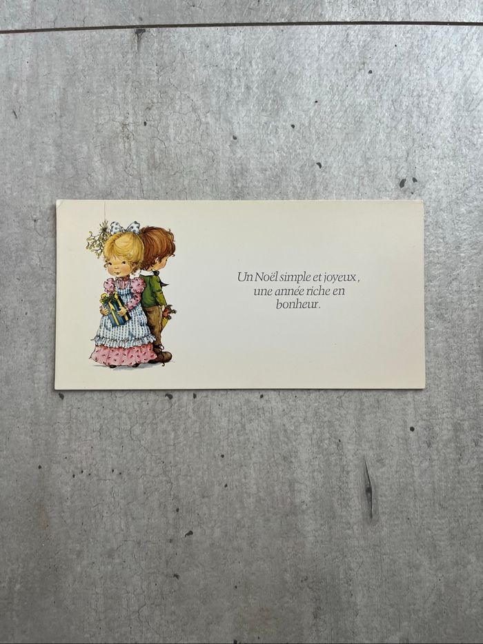 Je vends cette carte postale de Noël représentant deux enfants dans un style vintage. - Type de produit : Carte postale de collection - Thème : Noël, enfants - Texte : « un Noël simple et joyeux, une année riche en bonheur » - Dimension : environ 18,5x9,5 cm - Cartes jaunie par le temps Vous pourrez retrouver d’autres cartes dans mon dressing Bon état N'hésitez pas à me contacter pour plus d'informations ou de photos. Envoie rapide et soigné