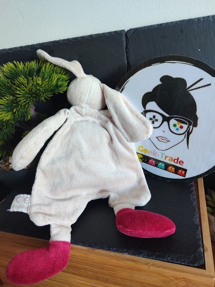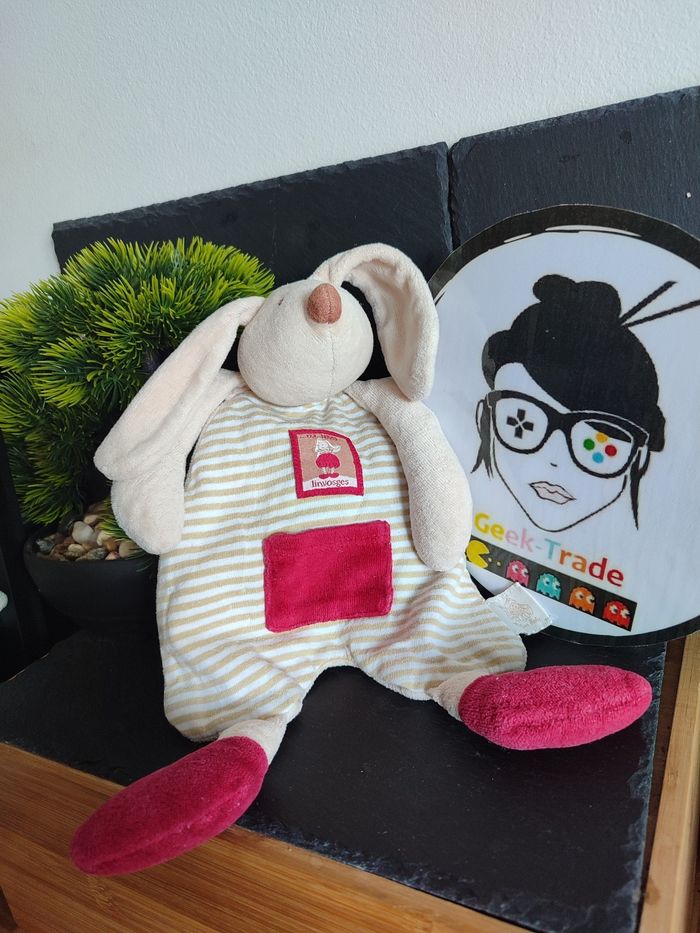 Doudou plat lapin marron crème rouge Linvosges chien rayé moulin roty 1 2 3 - photo numéro 1