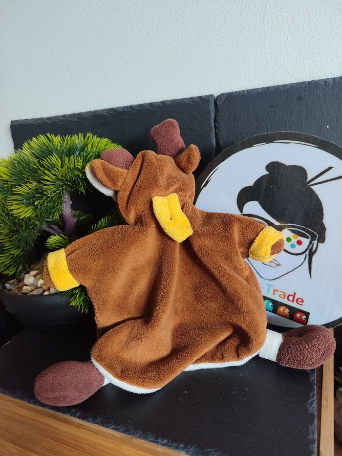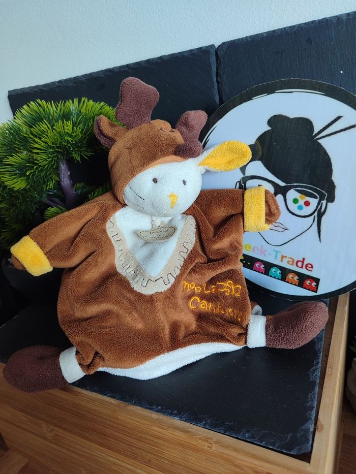 doudou et compagnie marionnette Main lapin déguisé caribou marron blanc jaune
