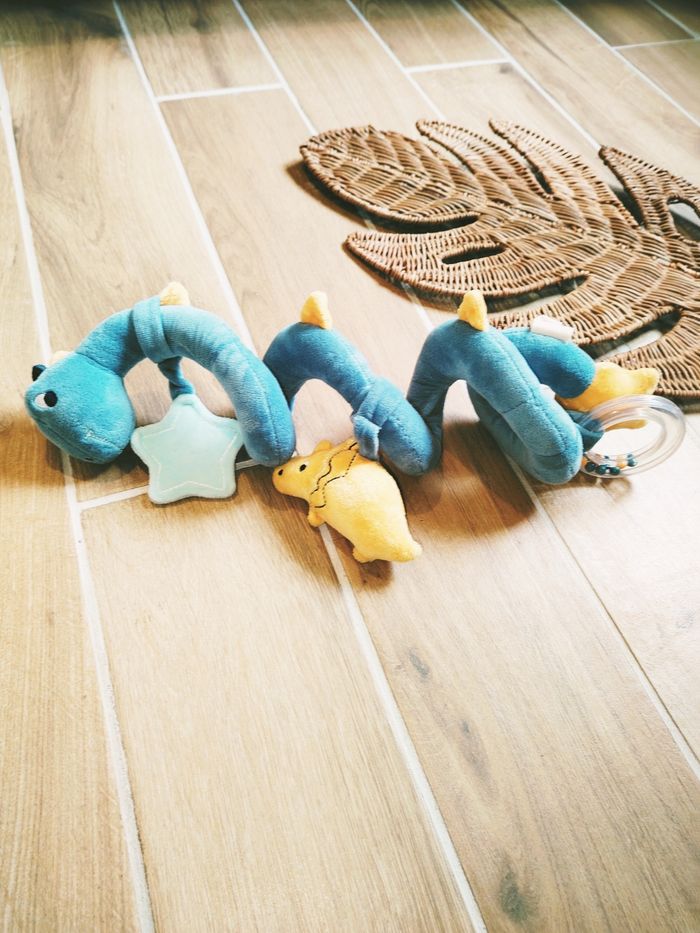 🦕Peluche doudou d'éveil Spirale multi activités sensorielle Dinosaure en tissu marque Orchestra