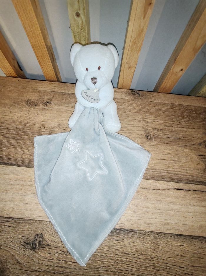 Baby'Nat Les flocons Doudou mouchoir ours blanc gris étoile Tbe Étiquette marque présente 9.90 euros Envoi en relais