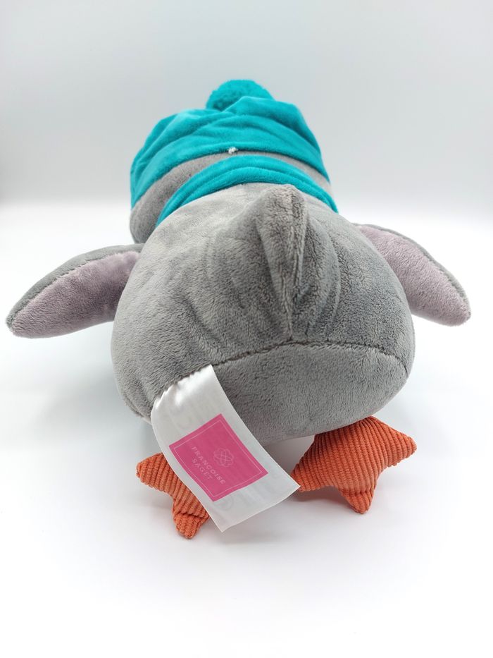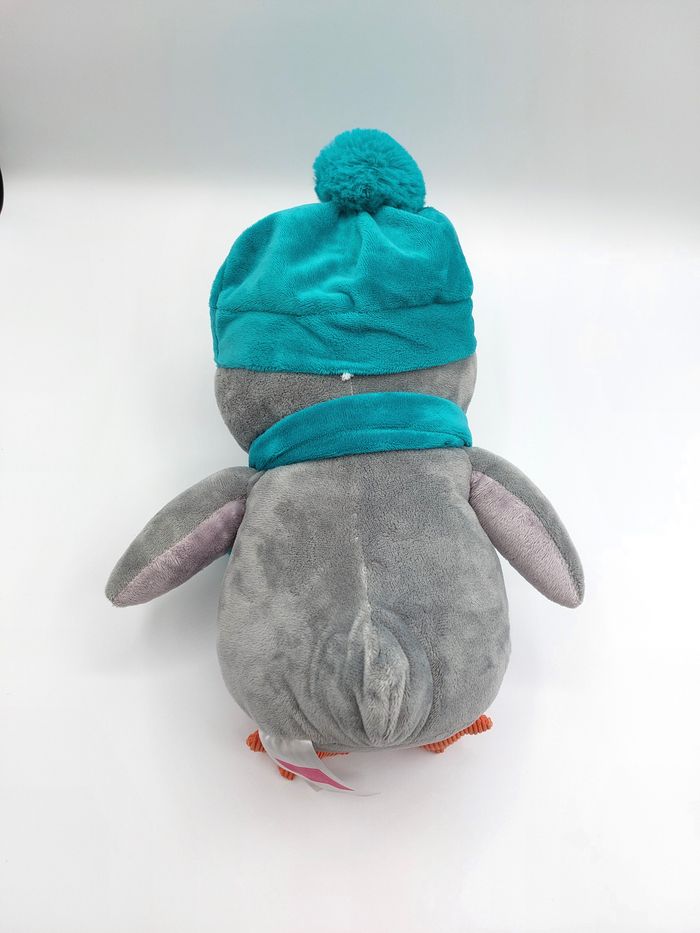 Peluche doudou pingouin blanc bleu vert Françoise SAGET nez orange cœur étoiles - photo numéro 3