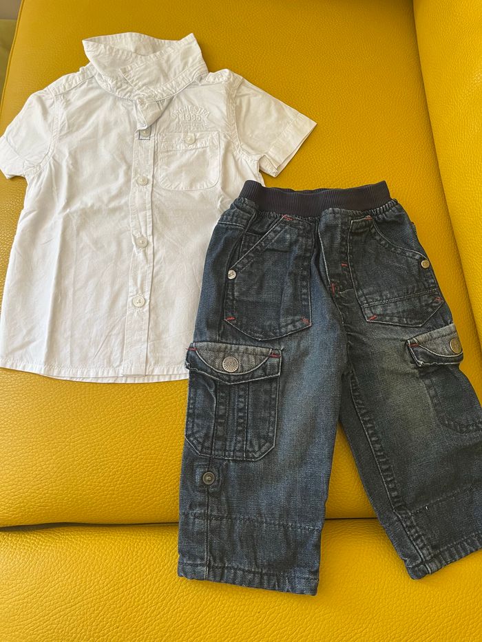 Ensemble chemise blanche manche courte et jean taille 6 mois 67cm Marque orechestra