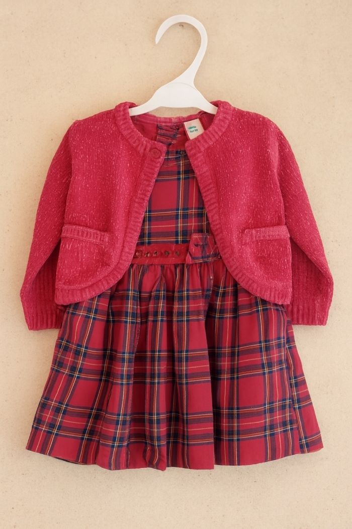 Ensemble Noël 6 Mois Prix : 8€ Marque : Tex Très bon état - 1 gilet -1 robe ( Le bandeau n'est pas fourni) Disponible immédiatement Envoie rapide et soigné Remises activé sur l'achat d'un lot 🖤
