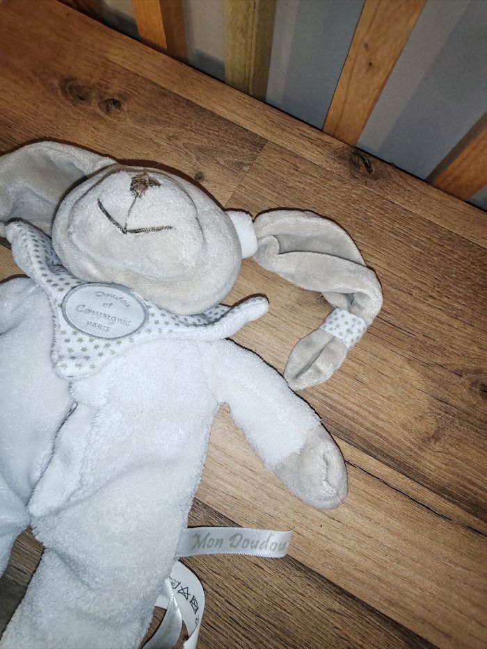 Lapin celeste gris et blanc doudou et compagnie mouchoir - photo numéro 2