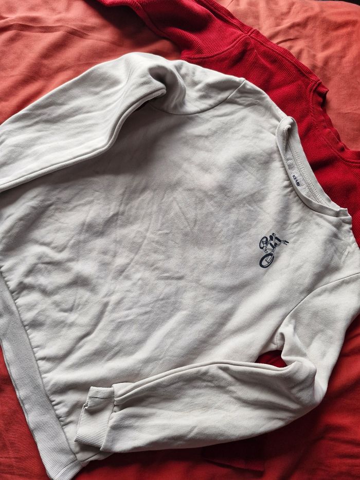 Lot de 3 sweets 🌸 1 sweet léger col rond Manches longues Impression Fortnite recto, verso et manches 🔵⚪️🔴🟢⚫️Couleurs multiples 🌟 Marque (plus d'étiquette) 🏷 12 ans 📌 Mesures sur tissu extensible Aisselles de 44cms à plat à 48cms en tirant Hauteur 56cms 🌸1 sweet col rond Manches longues Impression BMX poitrine Neutre au dos ⚪️ Couleur blanc 🌟 Marque Kiabi 🏷 12 ans 📌 Mesures sur tissu extensible Aisselles de 44cms à plat à 47cms en tirant Hauteur 54cms 🌸1 sweet maille col rond Manches longues 🔴 Couleur rouge 🌟 Marque Kiabi 🏷 12 ans Neutre au dos 📌 Mesures sur tissu extensible Aisselles de 42cms à plat à 48cms en tirant Hauteur 51cms Bien regarder les photos Tâche qu'on voit en transparence a l'omoplate sur celui du BMX Je n'ai pas remarqué d'autre anomalie N'hésitez pas a créer un lot pour profiter des réductions actives dès 2 articles #naya59199pull #naya59199garcon12ans #naya59199garcon #naya59199pullgarcon #naya59199lot