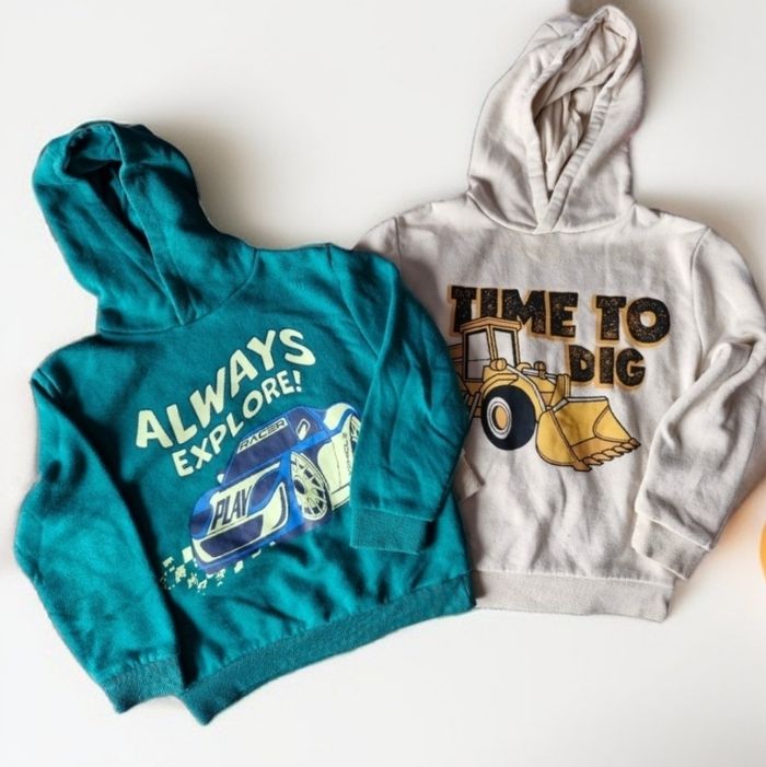 Lot de 2 sweets 🌸 1 sweet à capuche Manches longues Impression devant 🚜tractopelle Time to Dig ⚪️Couleurs crème 🌟 Marque Primark 🏷 5/6 ans 📌 Mesures sur tissu extensible Aisselles de 38cms à plat à 41cms en tirant Hauteur 45cms 🌸1 sweet à capuche Manches longues Impression 🚗 Always explore ! 🟢 Couleur vert 🌟 Marque Primark 🏷 5/6 ans 📌 Mesures sur tissu extensible Aisselles de 38cms à plat à 41cms en tirant Hauteur 43cms Bien regarder les photos Quelques bouloches Je n'ai pas remarqué d'autre anomalie N'hésitez pas a créer un lot pour profiter des réductions actives dès 2 articles #naya59199pull #naya59199garcon6ans #naya59199garcon5ans #naya59199garcon #naya59199pullgarcon #naya59199lot