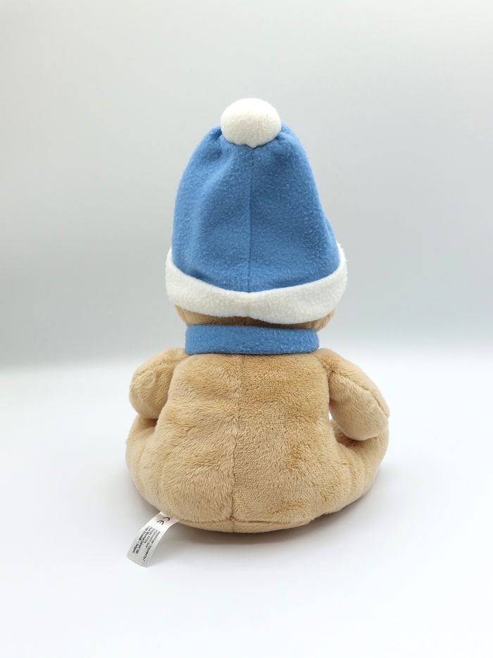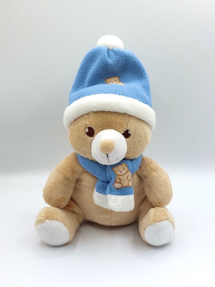 Peluche doudou ours beige blanc bleu GINGO BILOBA bonnet écharpe polaire 24/30 cm