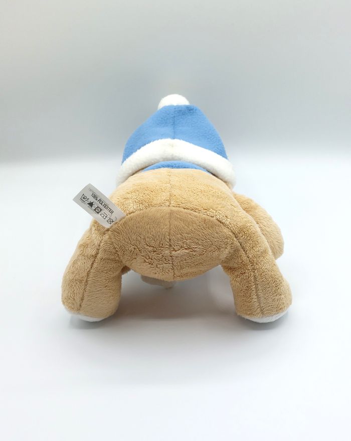 Peluche doudou ours beige blanc bleu GINGO BILOBA bonnet écharpe polaire 24/30 cm - photo numéro 2