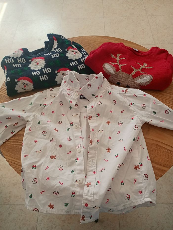 Lot pull bebe : 2 pulls de noel 1 chemise de noel