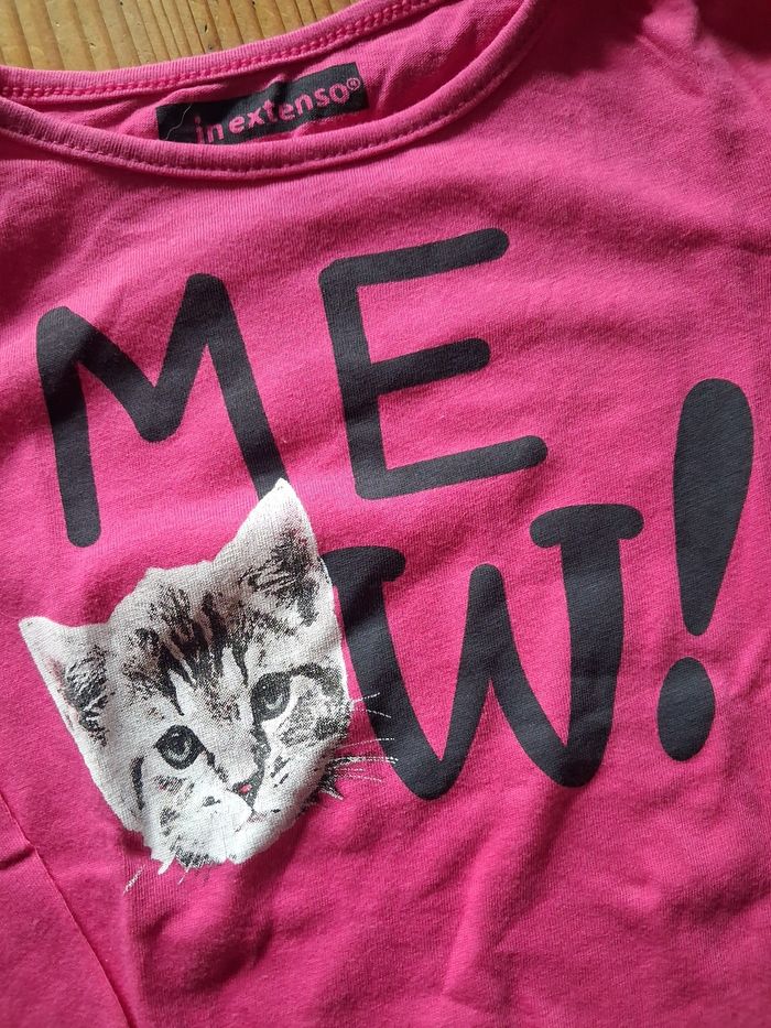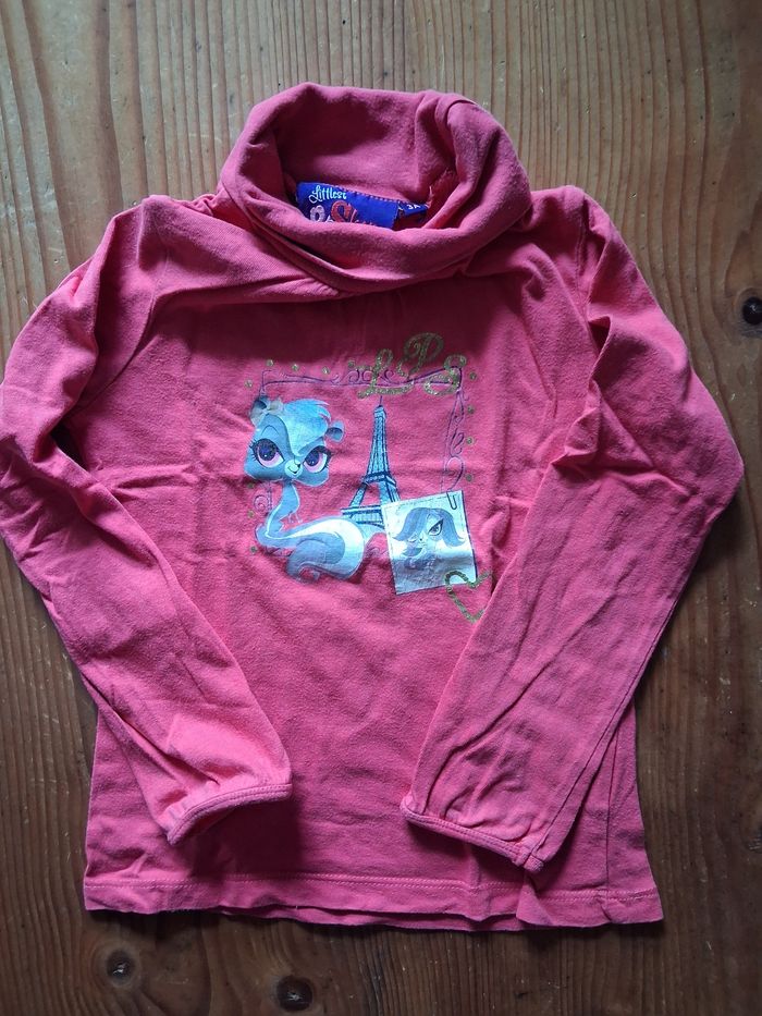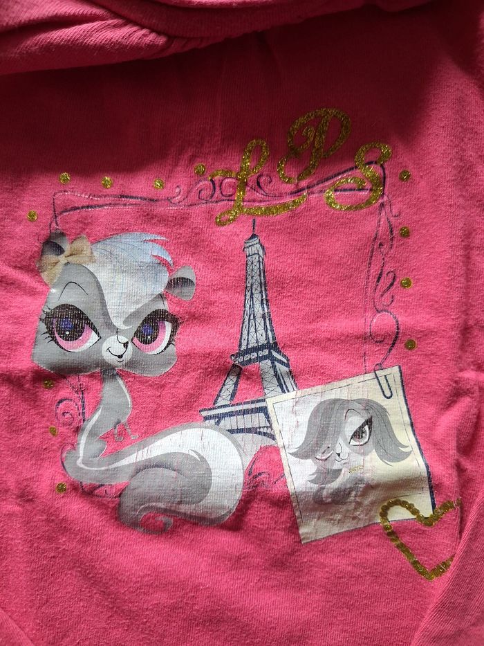 Lot de 3 T.shirts en manches longues - Le fushia : Littlest Pet Shop : un minuscule petit trou sur une des manches (voir photo) - Le rose avec le chat : In Extenso - Le rose : sans marque