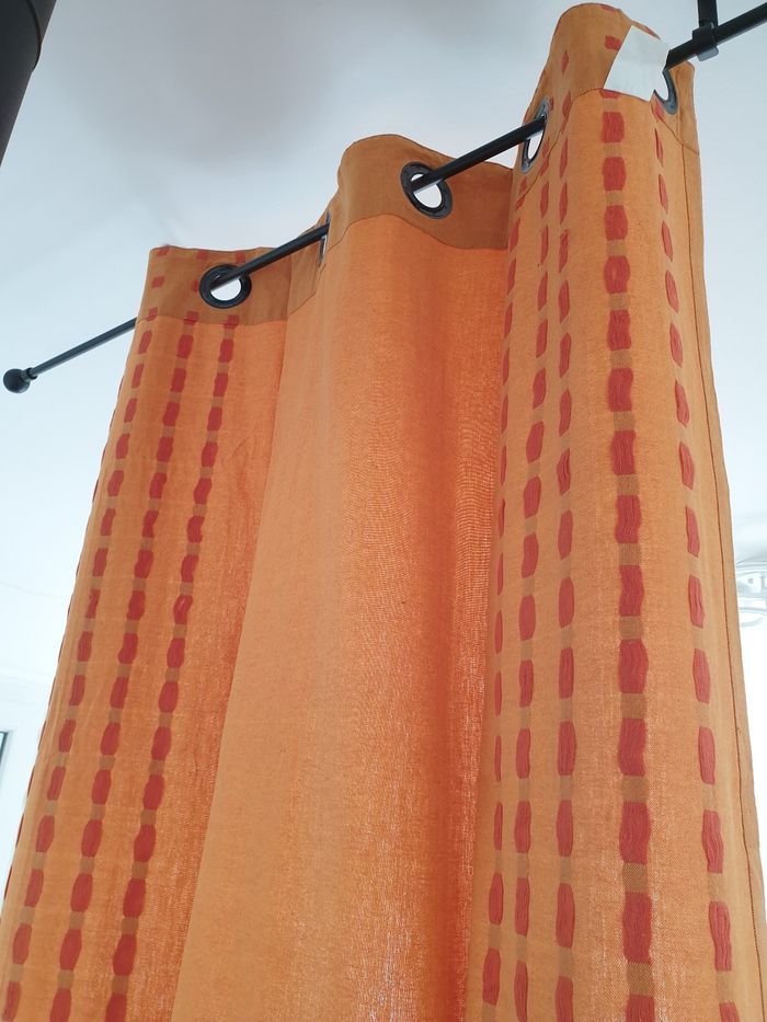 Rideau à oeillets orangé Il mesure environ 100cm de large et 240cm de long.
