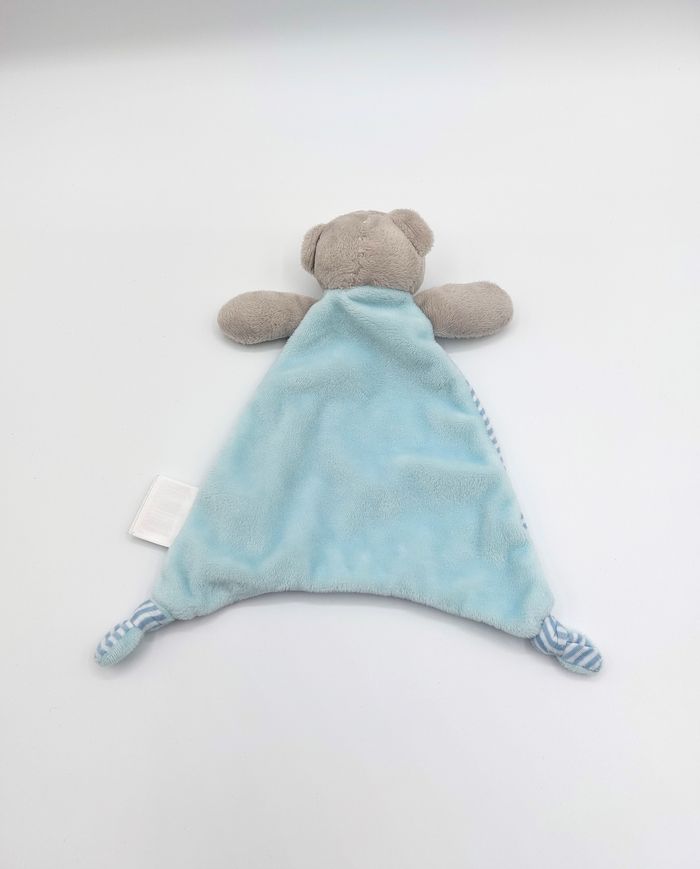 Doudou plat ours gris bleu blanc MES PETITS CAILLOUX rayures forme triangle TBE - photo numéro 2
