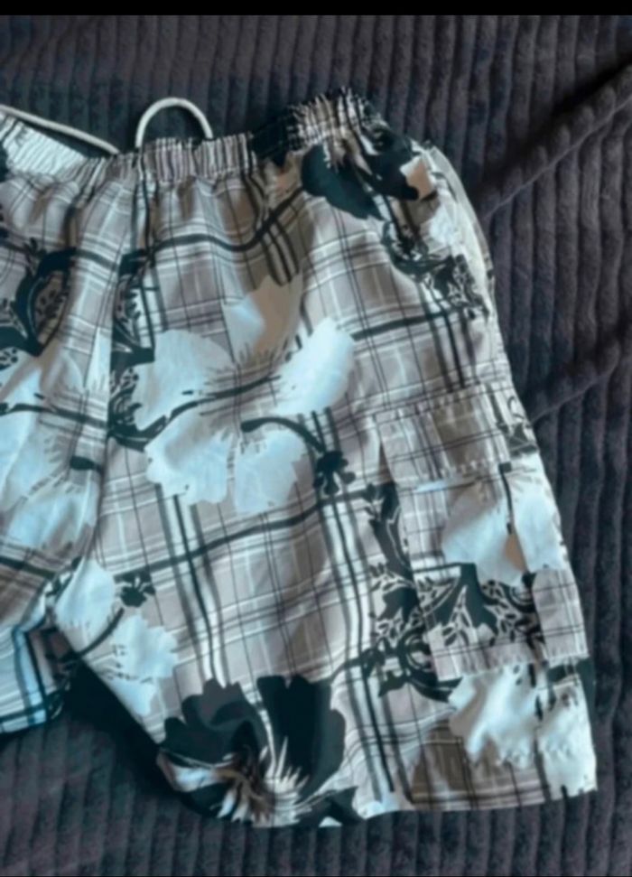 SHORT HOMME DEUX POCHES SUR LE COTÉ TAILLE M SANS MARQUE GRIS & NOIR & BLANC SATISFAISANT 1.19 EUROS
