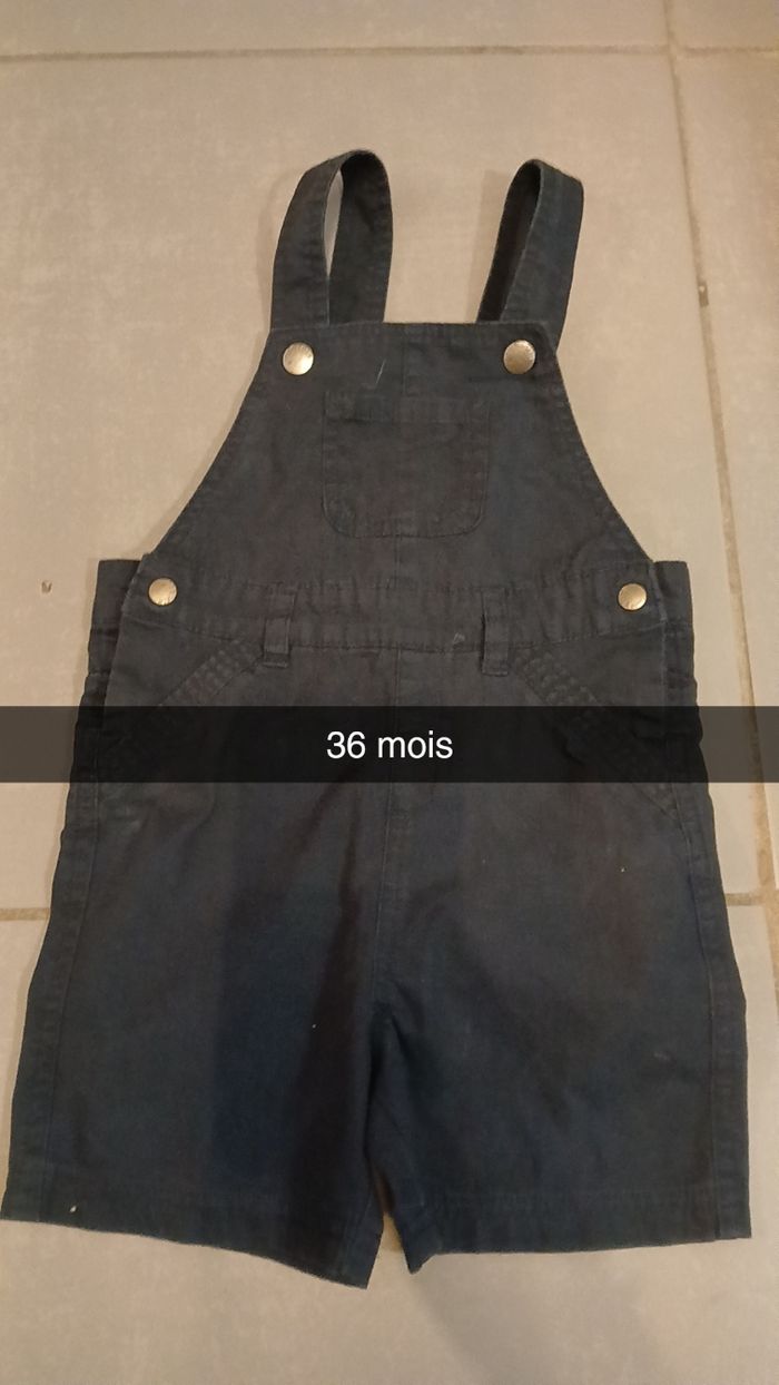 Salopette shirt en tres bon etat, 36 mois, de marque kiabi. Couleur bleue marine avec pressions