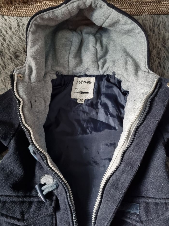 Duffle-coats marine à capuche, taille 12mois marque Kimbaloo, fermeture zippée avec boutons (2 zip), 2 poches ,capuche polaire.