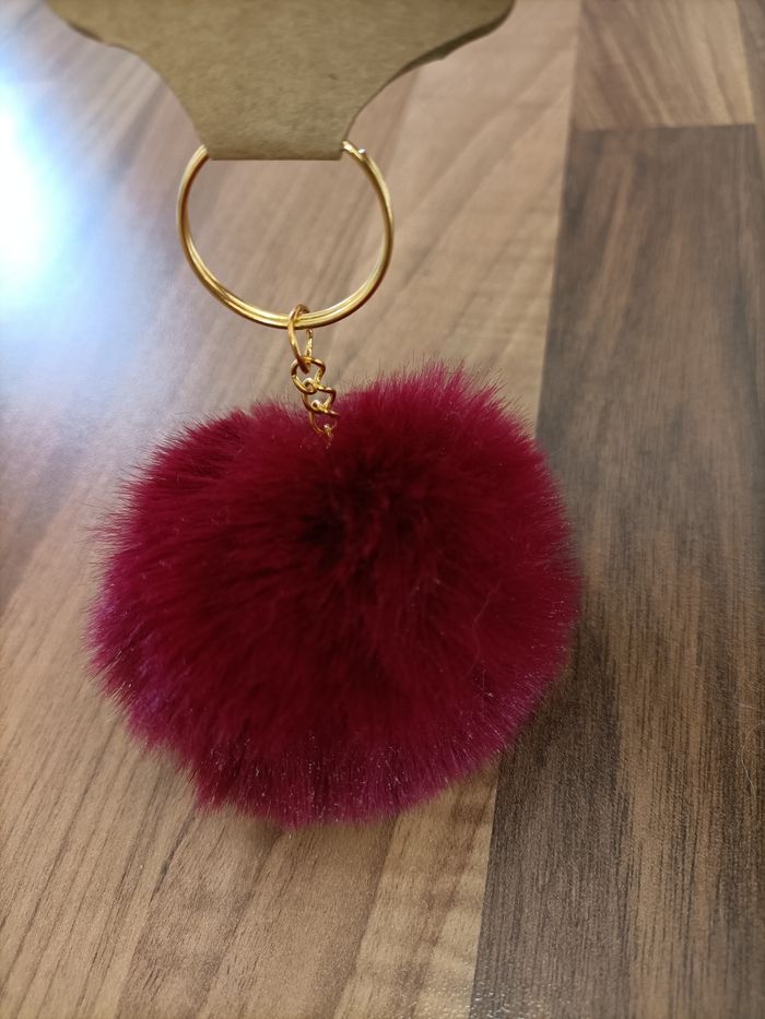 Porte clé pom-pom neuf or et bordeau - photo numéro 3