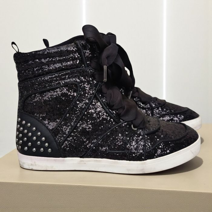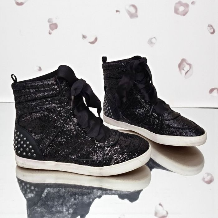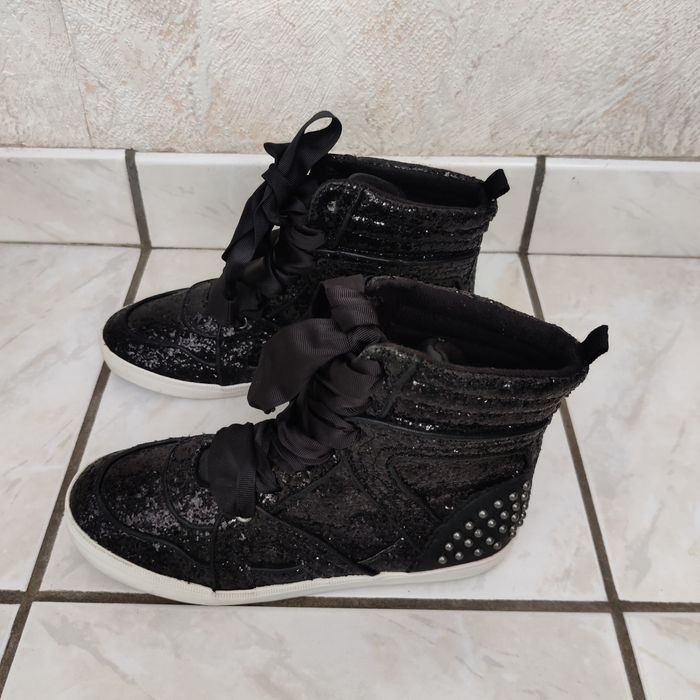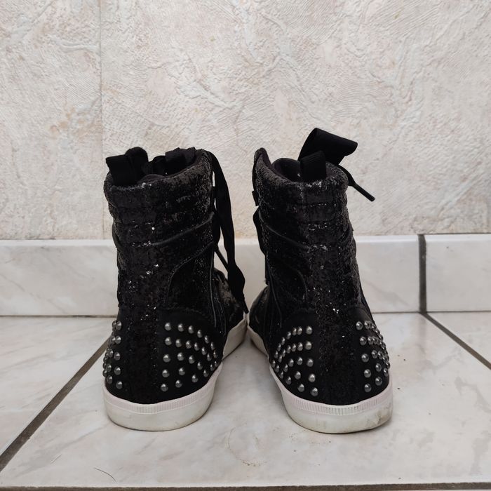 Baskets montantes pour fille en pointure 34 de la marque GAP de couleur noire à paillettes et clous comme neuve.