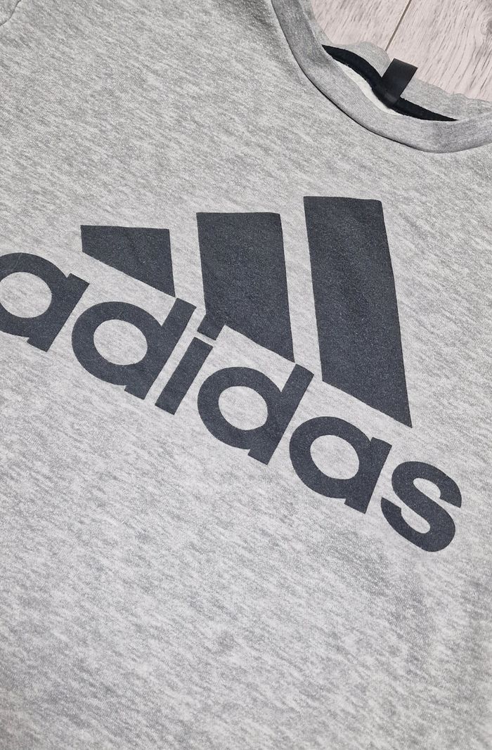 Vends un sweat-shirt Adidas Golf en excellent état général. ​Marque : Adidas Golf ​Couleur : Gris Chiné ​Taille : M (Medium) ​Design : Grand logo Adidas noir sur le devant. ​Le sweat est très confortable et stylé. ​État : D'occasion, en très bon état. Il y a juste une micro-tache très discrète sur le tissu (voir photo). Aucun trou ni déchirure. ​Idéal pour le sport ou un look décontracté. Mixte
