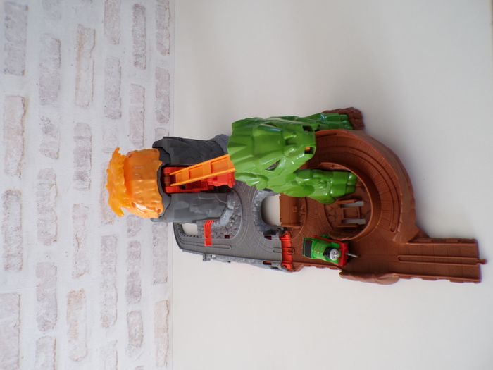 Circuit de train Thomas et ses amis - Le dragon et la jungle en super bon état, proche du très bon état. La tyrolienne s'étire et se rétracte, lorsque la locomotive Percy monte, elle arrive sur une passerelle en forme de dragon et descend par la gueule du gorille et continue son chemin. Pour faire basculer la passerelle, il faut incliner le dessus du volcan vers l'avant. Les effets sonore et lumineux fonctionne parfaitement. La locomotive est en bon état. D'autres photos sont disponibles, car limité... Mon dressing est trié par catégories, tailles et saisons pour les vêtements. #sonia222404 #jouetenfantsonia222404 #trainthomasonia222404