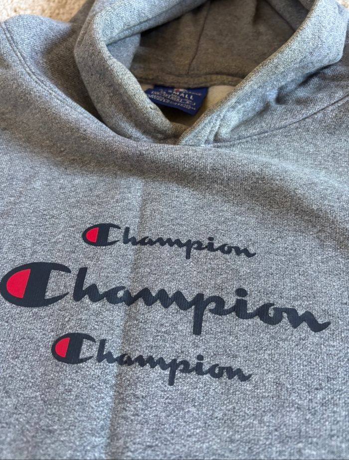 Pull à capuche de la marque Champion Taille XS En bon état Trace sur le vêtement voir photo #champion #sweatacapuche #sweatgris #pullgris