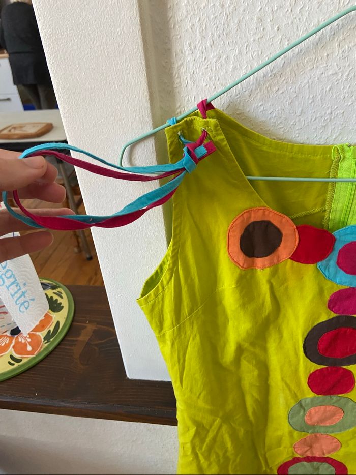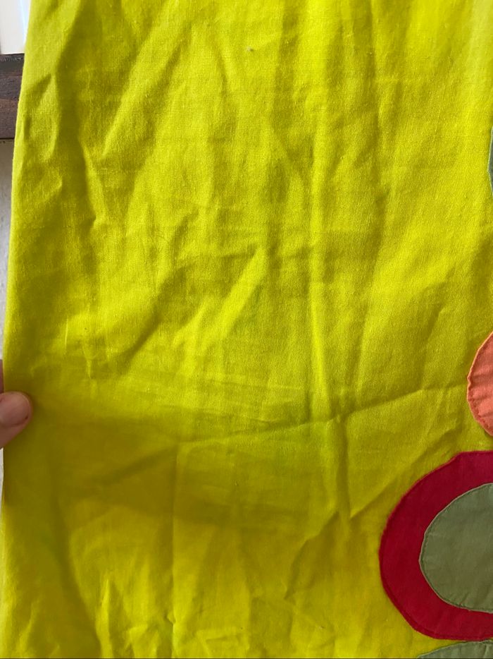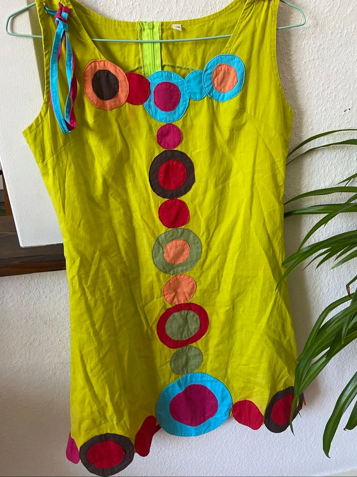 Vend cette jolie robe avec des motifs en couleurs en bon état ! (Traces vertes sur le devant voir photo) #robefemme #robemotif #vintage