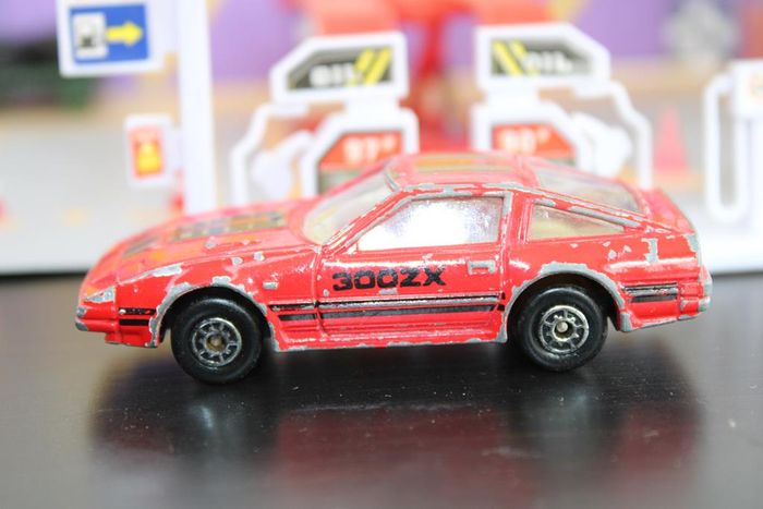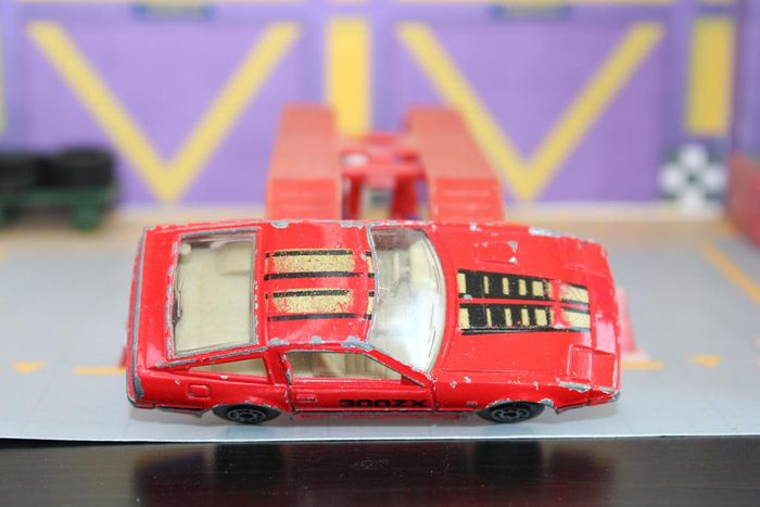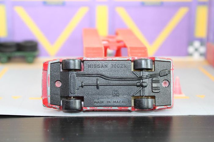 Voiture miniature Nissan 300 ZX Marque : Nissan Modèle : 300 ZX Echelle : environ 1:64, 3 inchs, 7 cm Couleur : Rouge et tampographie ligne noire et dorèe, vitrage clair Chassis : Plastique noir Intérieur : blanc Fabricant : MC Toy En bon état. Les axes de roues ne sont pas tordus. Vitrage intact. Quelques manques de peinture. Réponds avec plaisir aux demandes d'informations complémentaires Réponse rapide envoi soigné dans les meilleurs délais