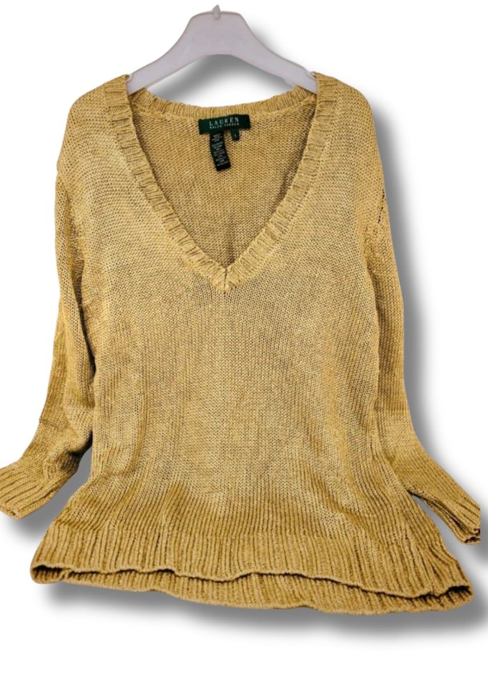 Pull col V Ralph Lauren – Doré scintillant - photo numéro 1