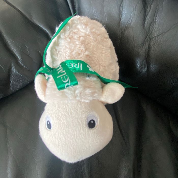 Peluche Mouton Blanc Avec Ruban Vert D'Irland the irish toys 22cm