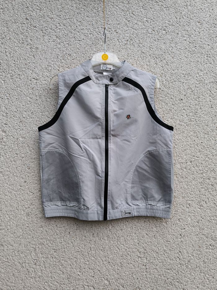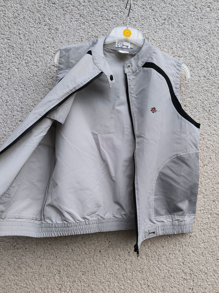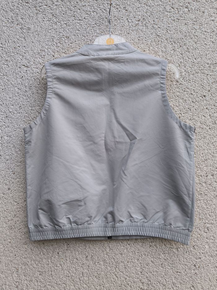Veste sans manches Marque Longboard Taille L, 40 • Coloris gris, noir • Fermeture par fermeture éclair et pression au col • 2 poches • Bas élastique • Tissu fin, leger • Petites taches, fermoir fermeture écaillé Largeur aisselle à aisselle non étirée : 54 cm Largeur aisselle à aisselle étirée au maximum : 56 cm Longueur totale : 57 cm Longueur aisselle : 34 cm Style vintage En bon état #evelyne_taille_40