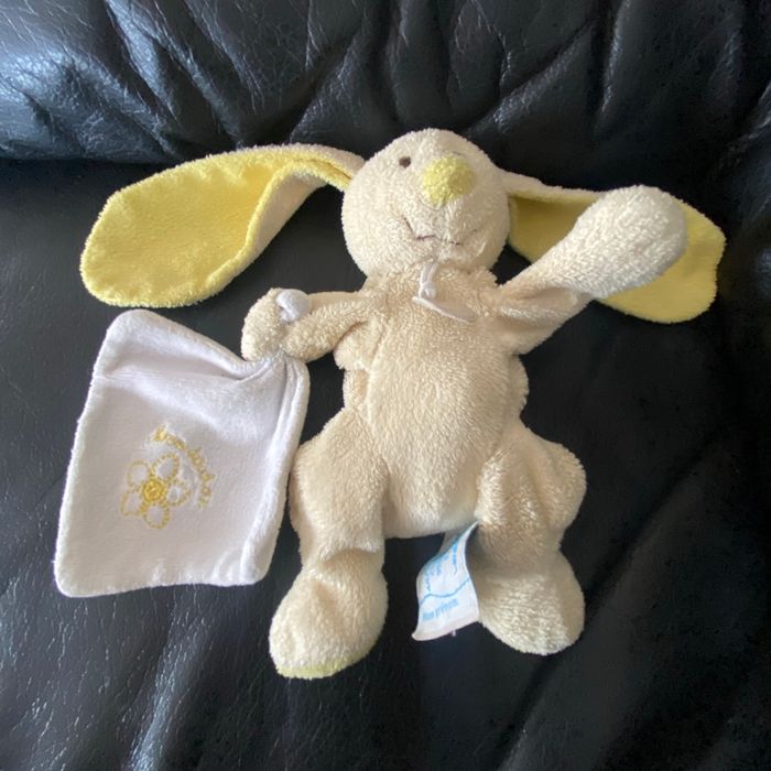 DOUDOU LAPIN JAUNE AVEC CARRE MOUCHOIR DOUDOU ET COMPAGNIE