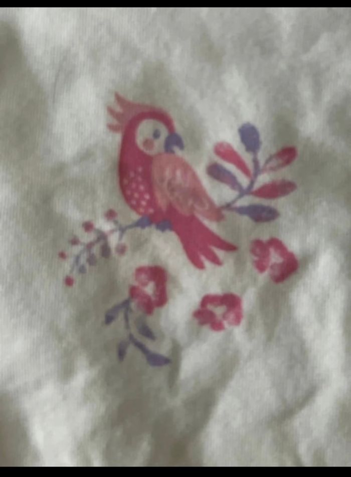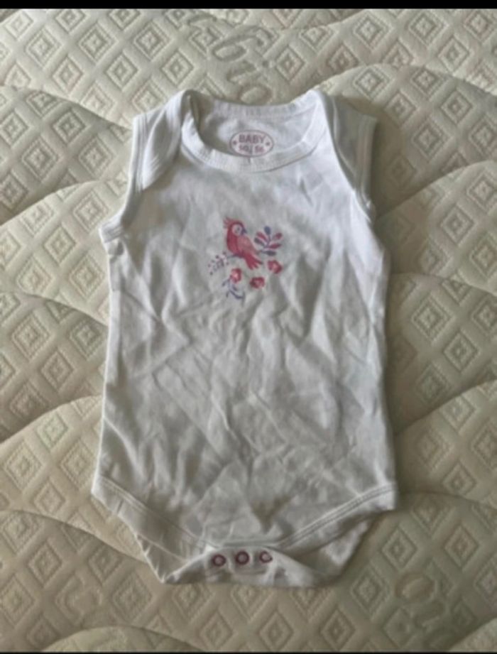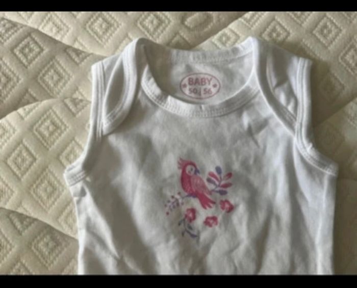 BODIE SANS MANCHE BÉBÉ MOTIF ( PERROQUET ) 0/2 MOIS (50-56 CM) BABY BLANC & ROSE BON ÉTAT 1 EURO