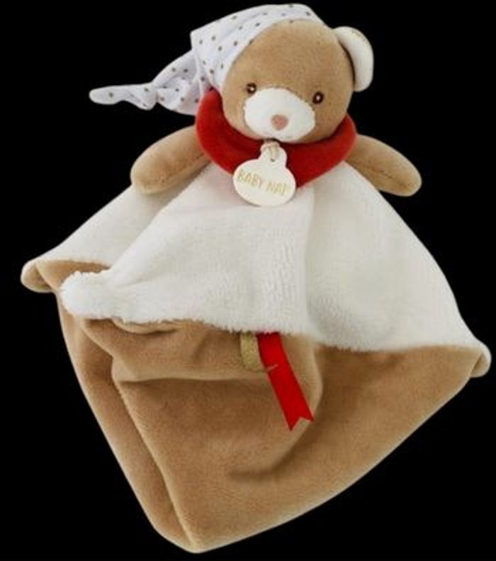 ❤️B5308 Doudou Plat Babynat Baby Nat Ours Blanc Marron Rouge - photo numéro 1