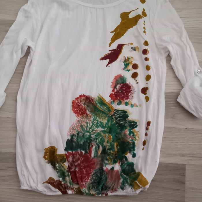 Chemisier blanc imprimé à manches 3/4 taille S - photo numéro 1
