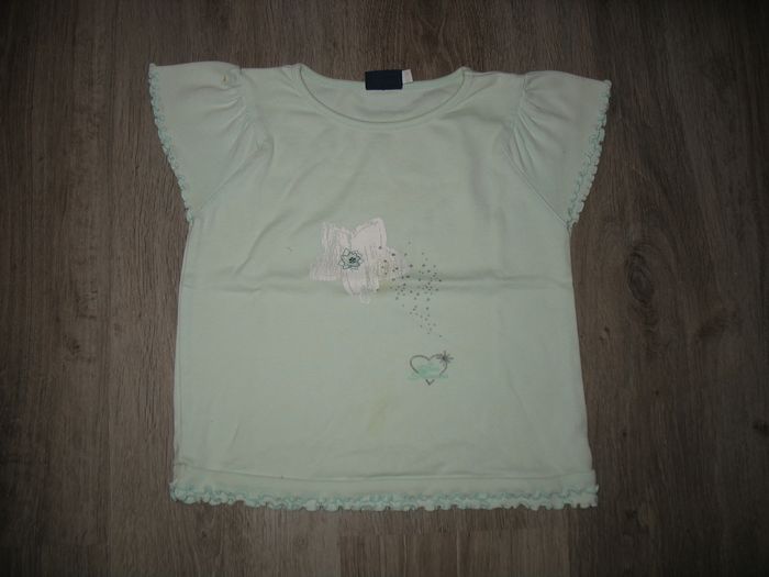 #7Ans_Fille_Nathg2210 TEE SHIRT MC VERT D'EAU FILLE "SERGENT MAJOR" - 7 ANS - n°03 Tee shirt à manches courtes vert d'eau - Col rond - Petits volants bas et bas des manches - Motif étoile devant - Dimensions épaule à épaule : 26 cm et longueur totale : 39 cm - Matière : 100% coton. Article d’occasion en très bon état - Sans trou - Ni tache - Lavé et repassé pour la vente. Possibilité d'envoyer d'autres photos sur simple demande. Maison non-fumeur - Sans animaux. Réduction lot activée. Allez voir mes autres ventes, je vide les placards. Beaucoup de vêtements de marque et beaucoup de jouets. Remise en mains propres ou possibilité d'envoi au tarif en vigueur à votre charge. Retour Refusé. Pour tout renseignement, n'hésitez pas à me contacter, je répondrai volontiers à vos questions. Réponse Assurée. Pour Consulter mes autres annonces tapez Nathg2210.
