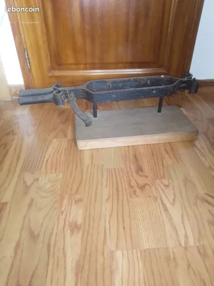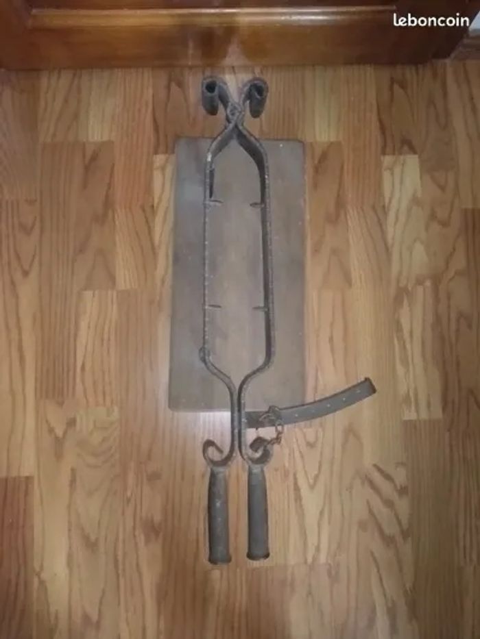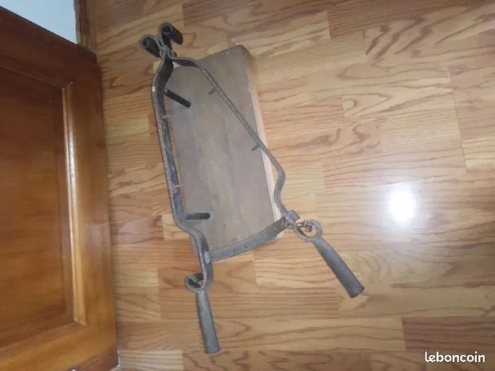 Serre jambon en fer forgé de très belle qualité Quatre pointes pour fixer le jambon Système de verrouillage par chainette pour s'adapter à toutes les tailles Support en bois épais. Longueur totale de 62 cm Poids 5.5 kg Idéal également en décoration il est patiné par le temps