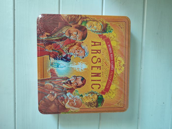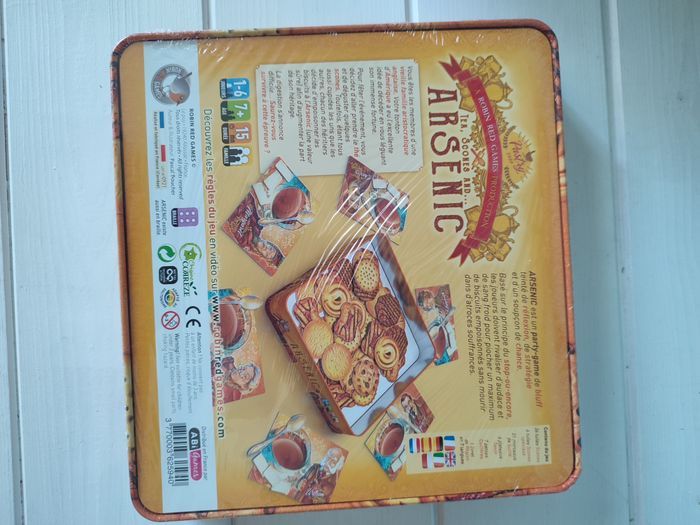 Produit neuf Robin Red Games Vous êtes les membres d’une vieille famille aristocratique anglaise. Votre tonton d’Amérique a eu l’excellente idée de décéder en vous léguant son immense fortune. Pour fêter l’événement, vous décidez d’aller prendre le thé et de déguster quelques scones. ARSENIC est un jeu familial, pour 1 à 6 joueurs, à partir de 7 ans et proposant des parties d'environ 15 minutes. Ce party-game teinté de réflexion, de bluff, de stratégie et d'un soupçon de chance est basé sur le principe du stop-ou-encore. Les joueurs doivent rivaliser d'audace et de sang froid pour s'arrêter avant qu’il ne soit trop tard. Une bonne analyse statistique des biscuits restants et de leur dangerosité potentielle peuvent vous permettre de tirer votre épingle du jeu... Mais ces chiffres rassurants sont malheureusement souvent faussés par la perfidie sans bornes de vos adversaires. Soyez prudent car parfois, il en faut vraiment peu pour se faire piéger et passer de vie à trépas.