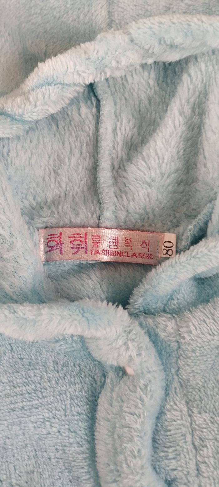 Bonjour, Je vends cette combinaison pour bébé marqué 80 mais correspond a un 6 mois en très bon état