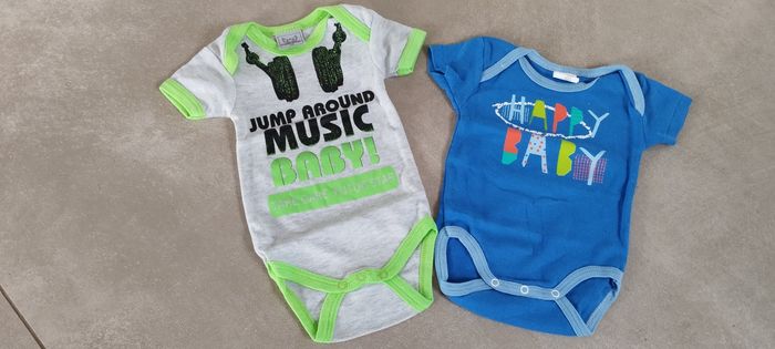 Bonjour, Je vends ce lot de deux body manche courte pour bébé garçon en taille 3 mois en très bon état