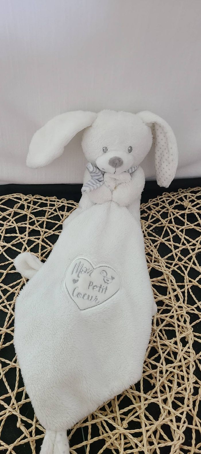 Lapin POMMETTE doudou blanc Mon petit coeur - photo numéro 1