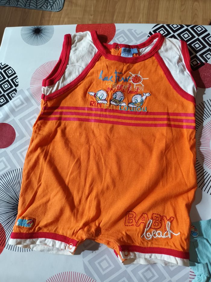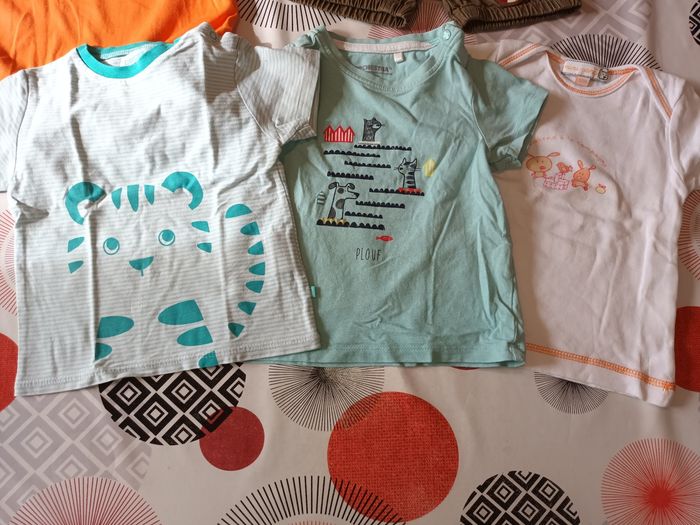 Lot 3 t-shirts, 1 short, 1 combishort Marque : Disney, Obaïbi, Orchestra, Mini gang, ? Taille : 12 mois #mon12moisgarsemilie Remise sur les lots