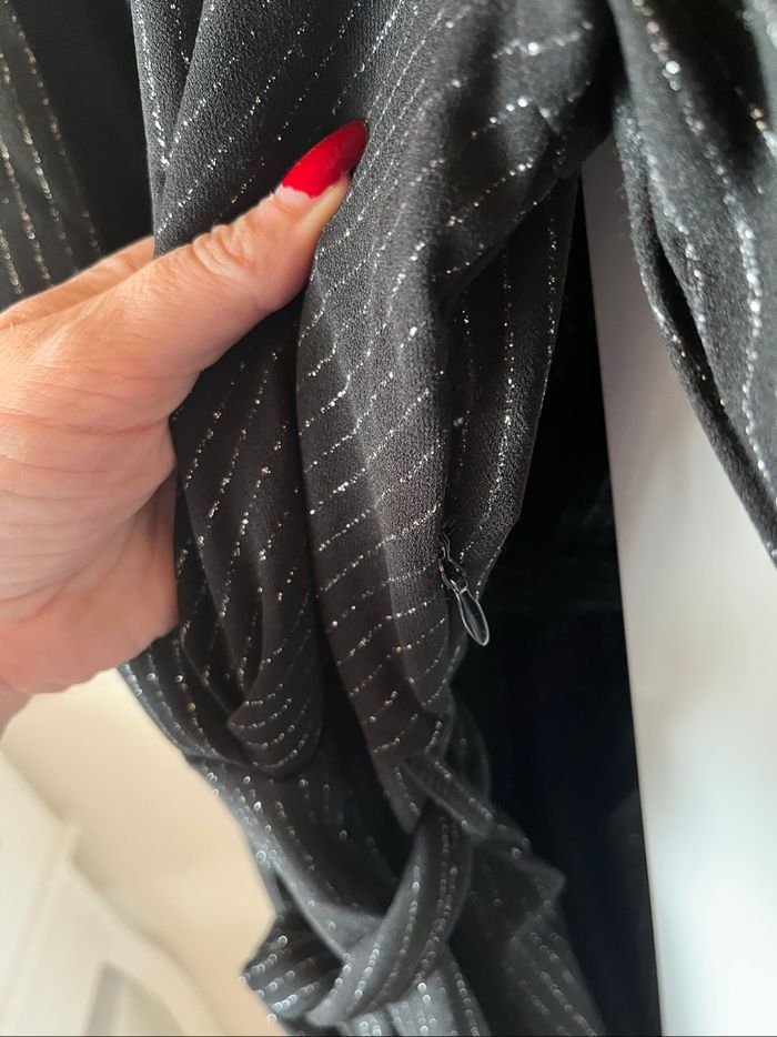 〰️ Combinaison pantalon noire avec paillettes argentées, ceinture, 2 poches