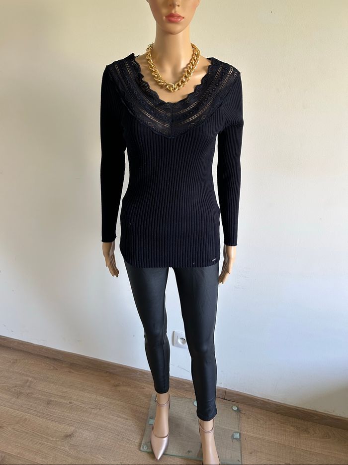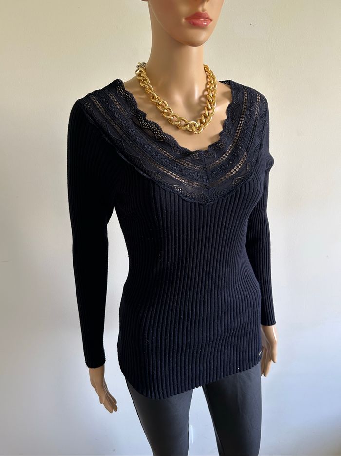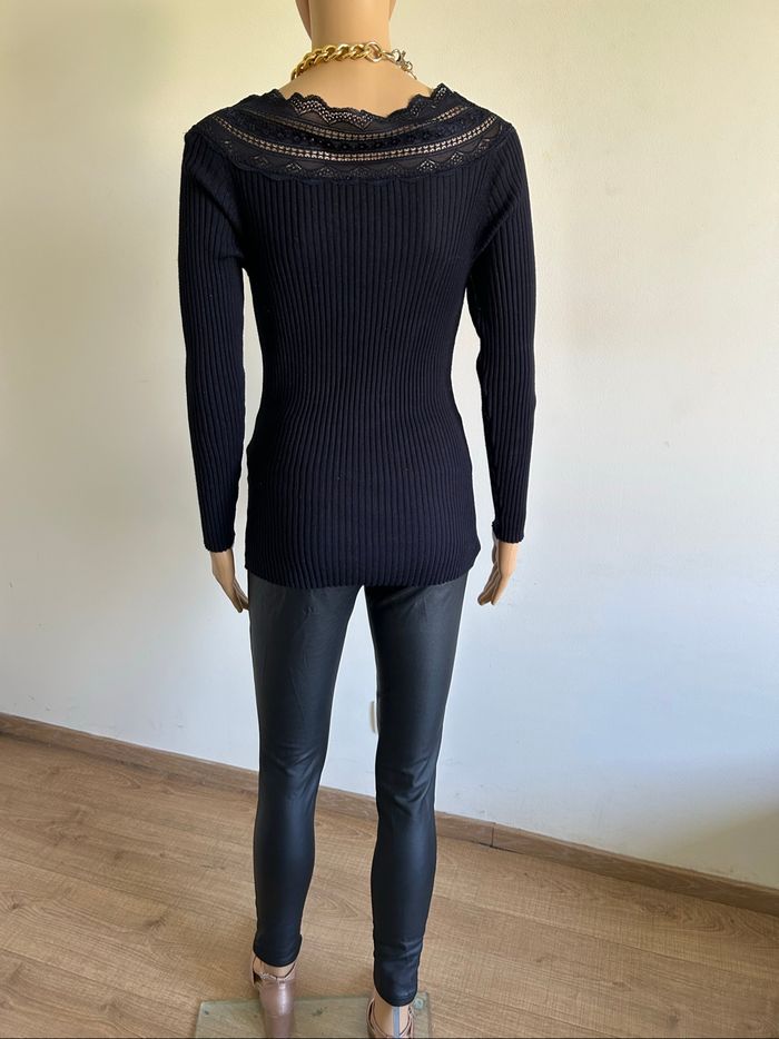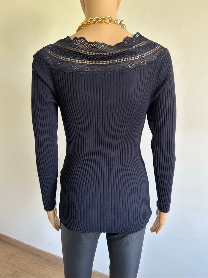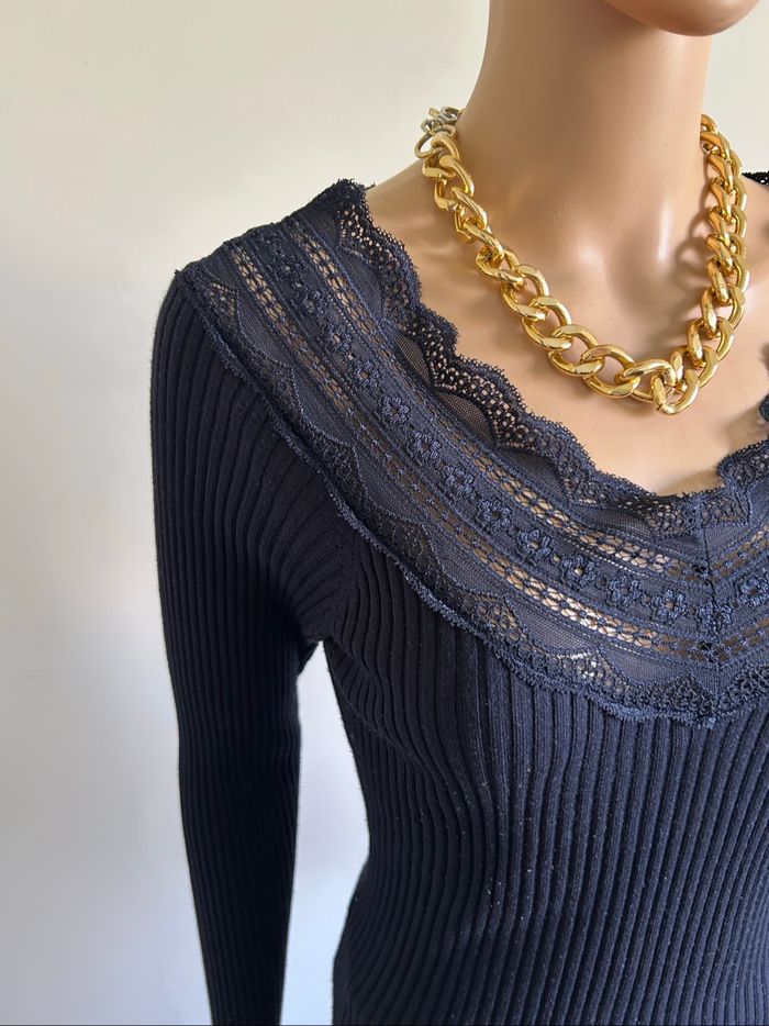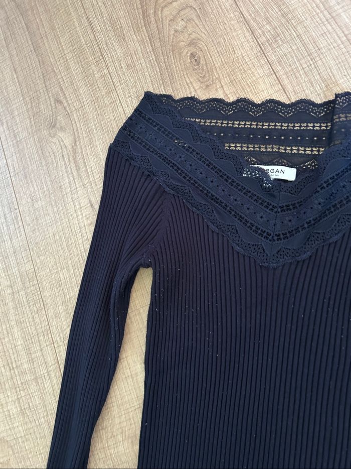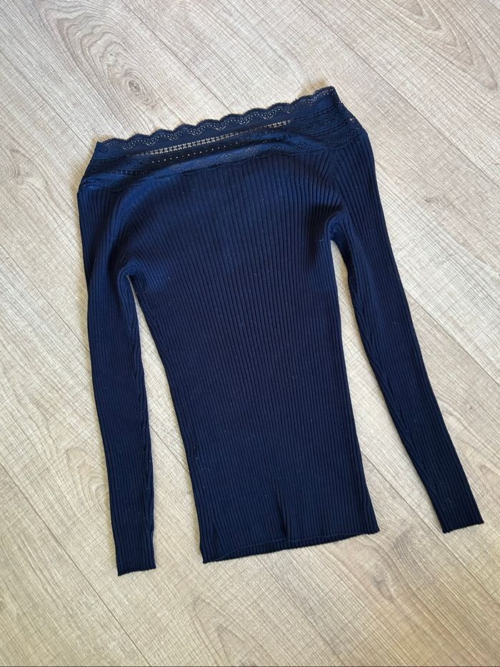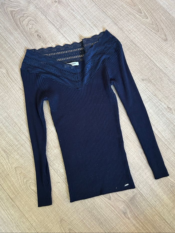 Joli pull bleu marine à manches longues, avec dentelle, de marque Morgan.