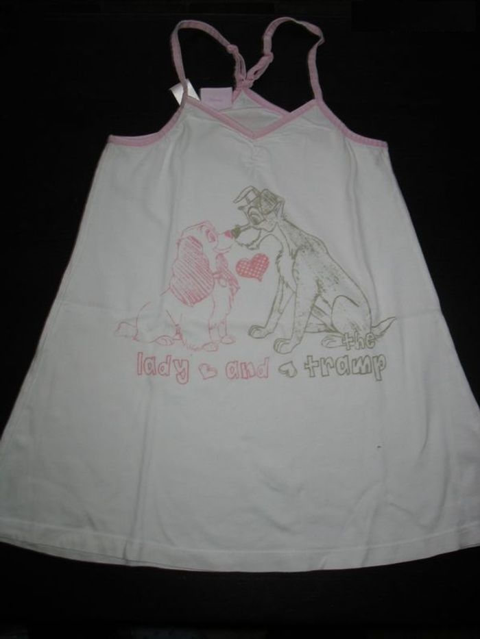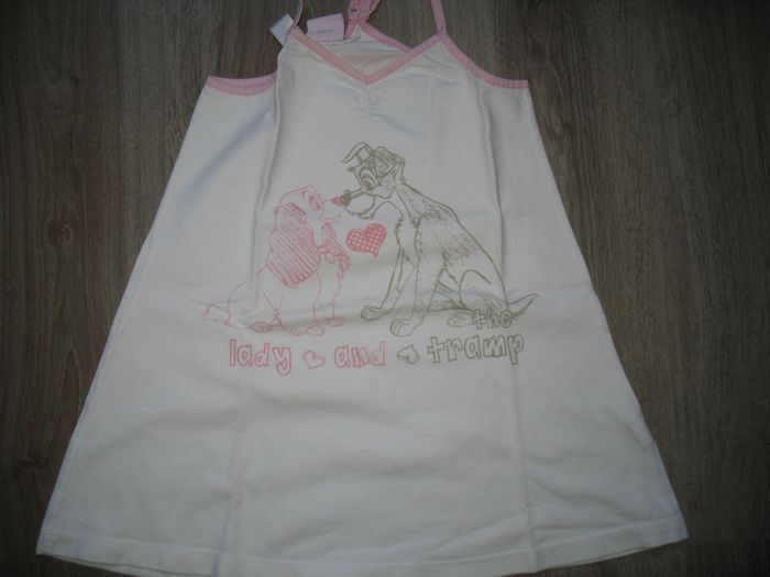 #6Ans_Fille_Nathg2210 TUNIQUE BLANCHE A BRETELLES ROSE FILLE "DISNEY BY ZARA" - 6 / 7 ANS - n°01 Tunique blanche à bretelles réglable et liserai rose - Bas évasé - Motif la Belle et le Clochard - Dimensions aisselle à aisselle : 27 cm et longueur totale : 39 cm - Matière : 100% coton. J'offre le legging blanc assorti - Niveau sous le genou - Petit trou fesse qui a été réparé se voit pas avec la tunique. Article d’occasion en très bon état - Sans trou - Ni tache - Lavé et repassé pour la vente. Possibilité d'envoyer d'autres photos sur simple demande. Maison non-fumeur - Sans animaux. Réduction lot activée. Allez voir mes autres ventes, je vide les placards. Beaucoup de vêtements de marque et beaucoup de jouets. Remise en mains propres ou possibilité d'envoi au tarif en vigueur à votre charge. Retour Refusé. Pour tout renseignement, n'hésitez pas à me contacter, je répondrai volontiers à vos questions. Réponse Assurée. Pour Consulter mes autres annonces tapez Nathg2210.