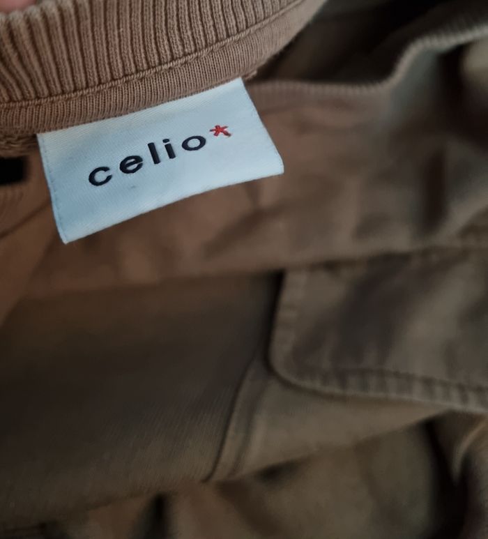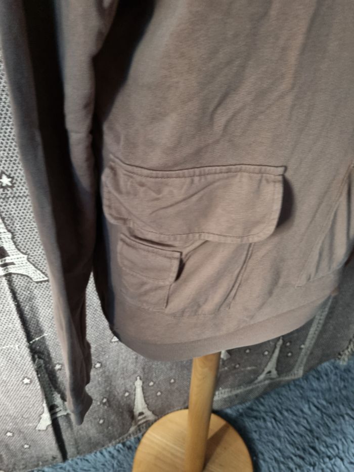 Pull beige à multiples poches, taille M marque Celio,longueur 65cm, largeur 50cm, longueur épaule à aisselle 23cm, largeur aisselle à aisselle 52cm, longueur manche 55cm.