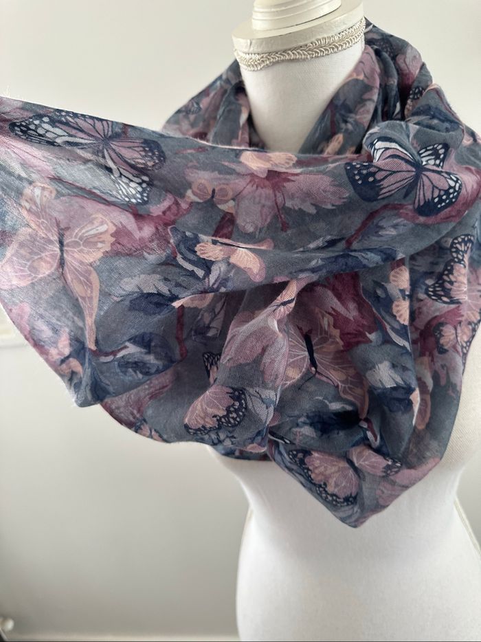 Foulard snood rose violet bleu papillons - photo numéro 1