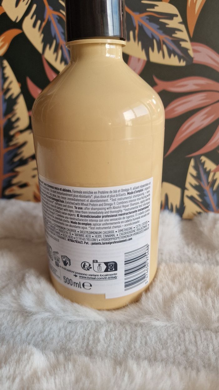Le shampooing restructurant instantané Série Expert Absolut Repair de L'Oréal Professionnel Paris hydrate intensément et nourrit les cheveux cassants, abîmés, desséchés.