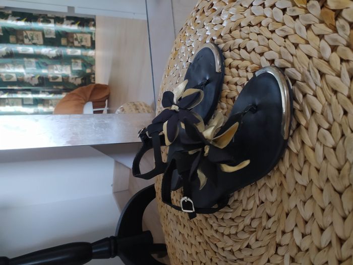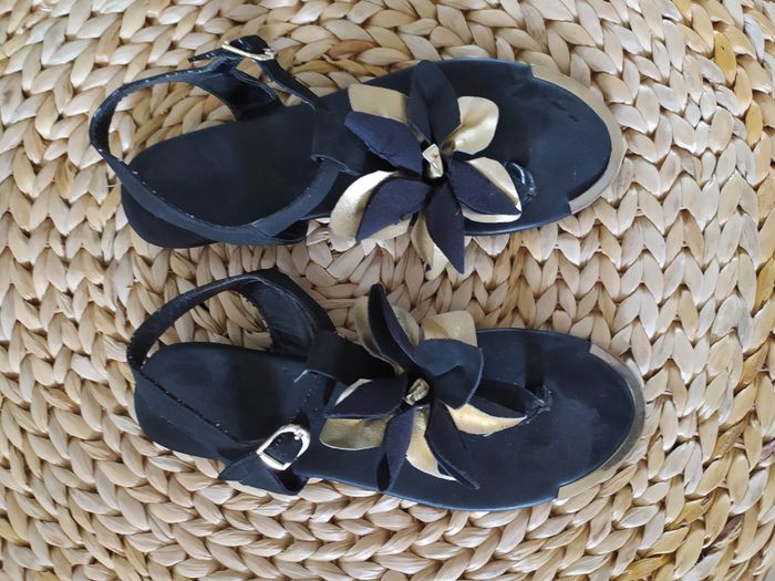 Sandalettes nu pied noir et dorée 38 Possibilité de remise en main propre sur REMIREMONT ou envoi Regardez mes autres ventes #chaussurefemmenaldocel88