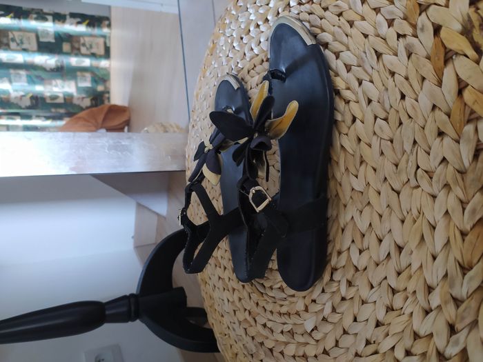 Sandalettes nu pied noir et dorée 38 - photo numéro 5